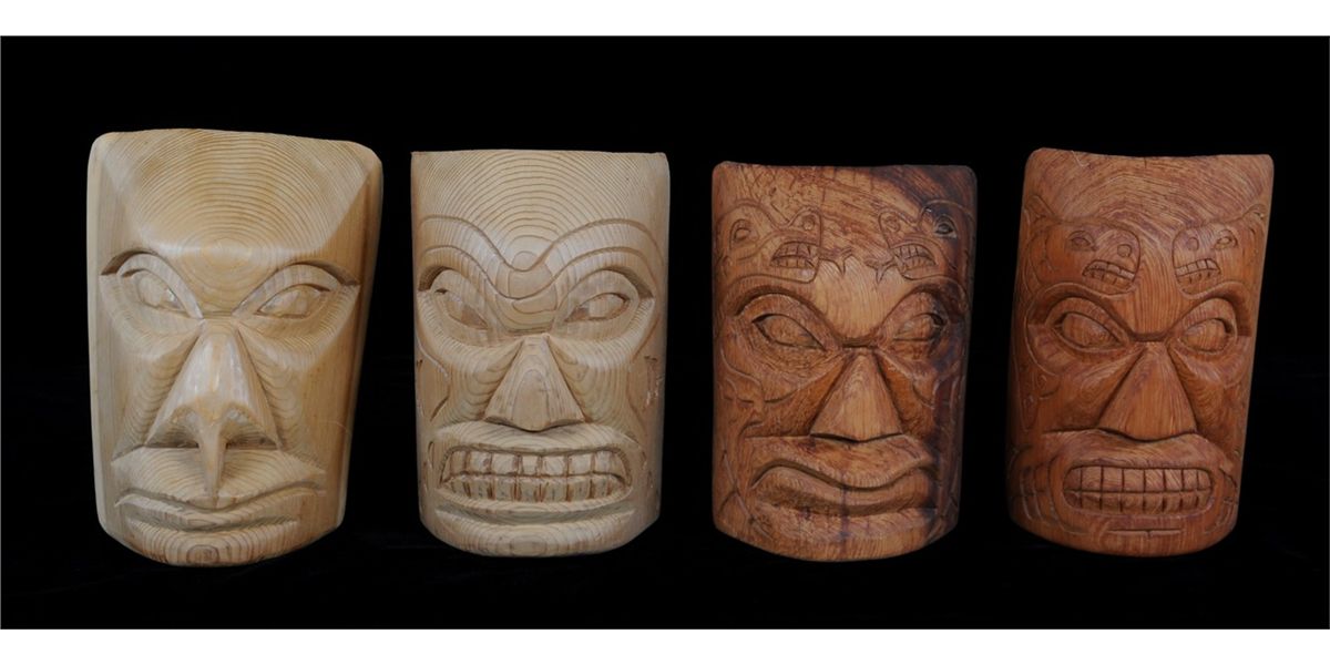 Four Carved Cowichan Masks 11" H. - 12" H. All In Good Condition