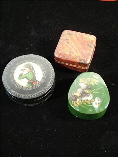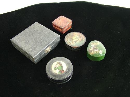 England and China (Late 19th Century) Four lacquered and hand painted boxes, One lacquered hide box, and one chess set