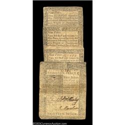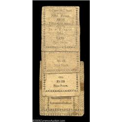 <TABLE cellSpacing=0 cellPadding=0 width="100%" bgColor=#000000 border=0><TBODY> <TR><TD width="100%"><TABLE cellSpacing=1 cellPadding=3 width="100%" border=0><TBODY><TR><TD width="100%" bgColor=#79735c><FONT face=arial color=#ffffff size=3><B>Description</B> </FONT></TD></TR><TR><TD width="100%" bgColor=#ffffff><FONT face=arial size=2><B>Four Colonials.</B></I> Three 9d notes from the Pennsylvania April 10, 1777 issue, and a Delaware January 1, 1776 18d <B>Fine</B></I> with a Scotch brand cellophane tape repair. (200-up ) (4 notes) </FONT></TD></TR></TBODY></TABLE></TD></TR></TBODY></TABLE><BR><TABLE cellSpacing=0 cellPadding=0 width="100%" bgColor=#000000 border=0><TBODY><TR> 4 notes Important notice: Heritage usually auctions material at the rate of 200-250 lots per hour. On some occasions eBay Live bid software or the Internet may not be able to keep up with the pace of the auction. We recommend placing a realistic absentee bid now as insurance to avoid disappointment. Occasionally the auctioneer may eliminate or reject an eBay Live bid, and the auctioneer may also reopen a lot after the close of the eBay live bidding (usually because we missed an audience bid), and may reject your bid even if it shows you as the winning bidder. By bidding via eBay Live, you agree that Heritage may award the lot to another bidder at its sole discretion under the circumstances described above or any other reasonable circumstances. Also please note that all Heritage lots purchased through eBay Live carry a 20% Buyer's Premium. Please make sure you read the Terms and Conditions before you bid.</TR></TBODY></TABLE>