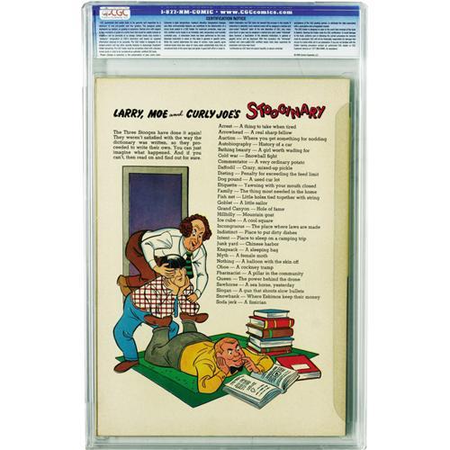 <B>Four Color #1043 The Three Stooges - File Copy (Dell, 1959) CGC NM 9.4 Off-white to white pages.</B></I> <I>Vise</B></I> guy, eh? Sorry, couldn't resist. The photo cover looks great on this NM copy from the files of Western Publishing. Overstreet 2006 NM- 9.2 value = $425. CGC census 3/06: 8 in 9.4, none higher. <I>From the Random House Archives.</B></I>