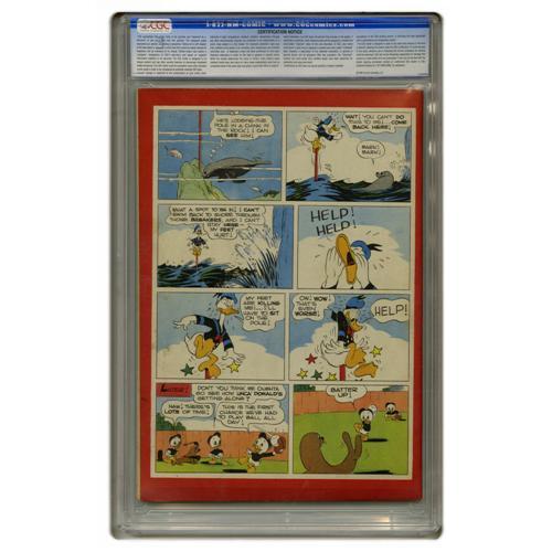 <B>Four Color #108 Donald Duck in "The Terror Of The River" (Dell, 1946) CGC FN/VF 7.0 Off-white to white pages.</B></I> Donald's seventh self-titled comic features a wondrous 52 pages by Carl Barks and a colorful eye-catching cover by Carl von Buettner. Overstreet 2006 FN 6.0 value = $390; VF 8.0 value = $1,105. CGC census 3/06: 4 in 7.0, 23 higher.