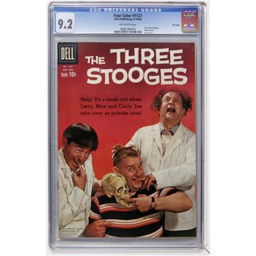 <B>Four Color #1127 Three Stooges- File Copy (Dell, 1960) CGC NM- 9.2 Off-white pages.</B></I> Photo/skull cover. Overstreet 2007 NM- 9.2 value = $230. CGC census 5/07: 8 in 9.2, 6 higher.<BR><BR><b>Shipping:</b> Comics - Slabbed (certified) (<a target="_blank" href="http://www.heritageauctions.com/common/shipping.php">view shipping information</a>)