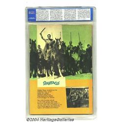 Four Color #1139 Spartacus (Dell, 1960) CGC NM 9.4 Cream to off-white pages. Here is Dell's adaptation of the movie "Spartacus," with a Kirk Douglas photo cover and interior art by John Buscema. This is the first copy of this issue we've had the pleasure of offering at auction. To date, no other copies of this issue have been graded higher by CGC. Overstreet 2003 NM 9.4 value = $175. Important notice: Heritage usually auctions material at the rate of 200-250 lots per hour. On some occasions eBay Live bid software or the Internet may not be able to keep up with the pace of the auction. We recommend placing a realistic absentee bid now as insurance to avoid disappointment. Occasionally the auctioneer may eliminate or reject an eBay Live bid, and the auctioneer may also reopen a lot after the close of the eBay live bidding (usually because we missed an audience bid), and may reject your bid even if it shows you as the winning bidder. By bidding via eBay Live, you agree that Heritage may award the lot to another bidder at its sole discretion under the circumstances described above or any other reasonable circumstances. Since eBay bids are not shown to us until we open the lot on the floor, we treat those bids just like floor bids. In most cases the floor responds before the eBay bid is presented to us, due to Internet lag time, so for consistency we have made it a policy that floor bids are always considered first over tie eBay live bids. Also please note that all Heritage lots purchased through eBay Live carry a 20% Buyer's Premium. Please make sure you read the Terms and Conditions before you bid.