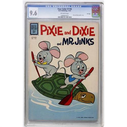<B>Four Color #1196 Pixie and Dixie and Mr. Jinks File Copy (Dell, 1961) CGC NM+ 9.6 Off-white pages.</B></I> Featuring Pixie and Dixie and Mr. Jinks. Overstreet 2007 NM- 9.2 value = $80. CGC census 9/07: 6 in 9.6, none higher.<BR><BR><b>Shipping:</b> Comics - Slabbed (certified) (<a target="_blank" href="http://www.heritageauctions.com/common/shipping.php">view shipping information</a>)