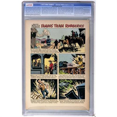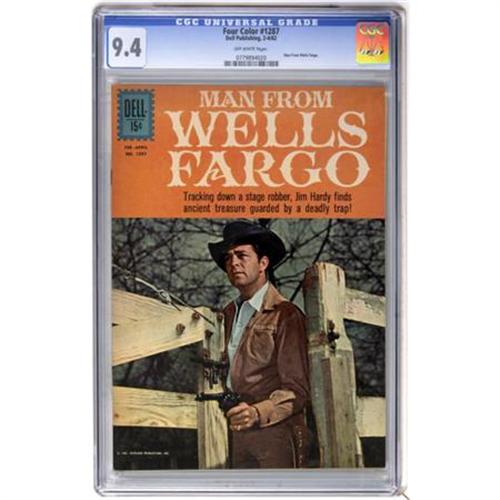 <B>Four Color #1287 Man From Wells Fargo (Dell, 1962) CGC NM 9.4 Off-white pages.</B></I> Man From Wells Fargo. Photo cover. Overstreet 2007 NM- 9.2 value = $80. CGC census 6/07: 1 in 9.4, none higher. <I>From the Keith Marlow Collection.</B></I><BR><BR><b>Shipping:</b> Comics - Slabbed (certified) (<a target="_blank" href="http://www.heritageauctions.com/common/shipping.php">view shipping information</a>)