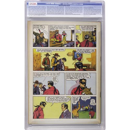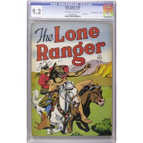 <B>Four Color #136 Lone Ranger - Davis Crippen ("D" Copy) pedigree (Dell, 1947) CGC NM- 9.2 Off-white to white pages.</B></I> This is the nicest copy we've seen of this outing for the masked man! Overstreet 2006 NM- 9.2 value = $360. CGC census 9/06: 2 in 9.2, none higher. <I>From the Crippen Collection.</B></I><BR><BR><b>Shipping:</b> Slabbed Comic (<a target="_blank" href="http://www.heritageauctions.com/common/shipping.php">view shipping information</a>)