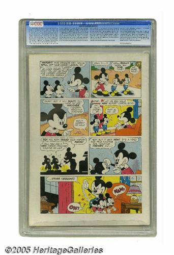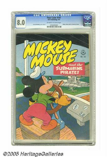<B>Four Color #141 Mickey Mouse (Dell, 1947) CGC VF 8.0 Off-white to white pages.</B></I> "Mickey Mouse and the Submarine Pirates." Harvey Eisenberg cover and art. Overstreet 2005 VF 8.0 value = $158. CGC census 1/05: 1 in 8.0, none higher.