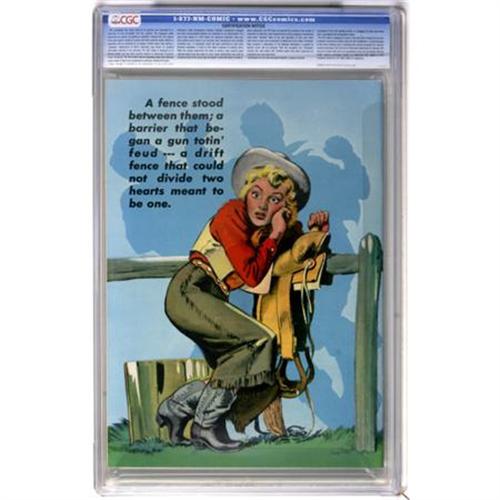 <B>Four Color #270 Zane Grey's Drift Fence - Vancouver pedigree (Dell, 1950) CGC VF/NM 9.0 White pages.</B></I> Zane Grey's Drift Fence. This copy is currently the highest, and only CGC-graded copy. Overstreet 2007 VF/NM 9.0 value = $53; NM- 9.2 value = $70. CGC census 6/07: 1 in 9.0, none higher.<BR><BR><b>Shipping:</b> Comics - Slabbed (certified) (<a target="_blank" href="http://www.heritageauctions.com/common/shipping.php">view shipping information</a>)
