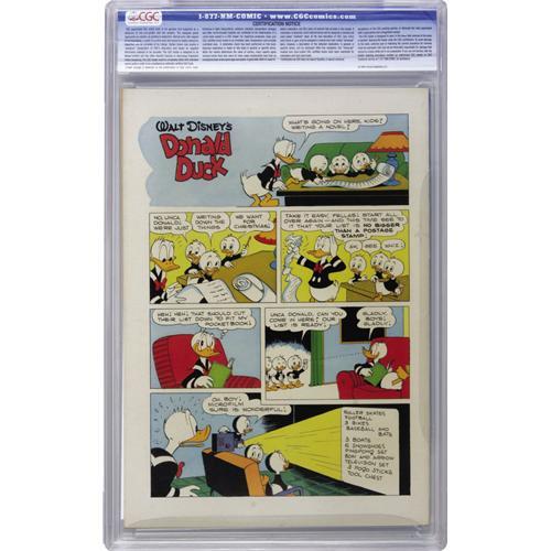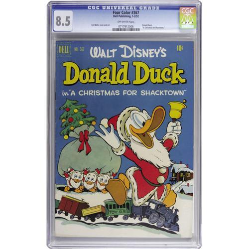 <B>Four Color #367 Donald Duck in "A Christmas for Shacktown" (Dell, 1952) CGC VF+ 8.5 Off-white pages.</B></I> Carl Barks wrote and drew this memorable Christmas tale. Overstreet 2006 VF 8.0 value = $233; VF/NM 9.0 value = $379. CGC census 10/06: 1 in 8.5, 3 higher.<BR><BR><b>Shipping:</b> Slabbed Comic (<a target="_blank" href="http://www.heritageauctions.com/common/shipping.php">view shipping information</a>)