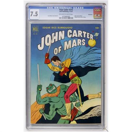 <B>Four Color #375 John Carter of Mars - Vancouver pedigree (Dell, 1952) CGC VF- 7.5 Off-white to white pages.</B></I> John Carter of Mars. Origin story. Jesse Marsh cover and art. Story by Edgar Rice Burroughs. Overstreet 2007 VF 8.0 value = $200. CGC census 6/07: 2 in 7.5, 2 higher.<BR><BR><b>Shipping:</b> Comics - Slabbed (certified) (<a target="_blank" href="http://www.heritageauctions.com/common/shipping.php">view shipping information</a>)