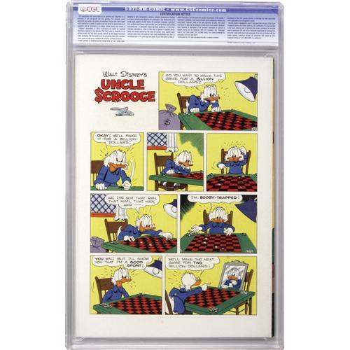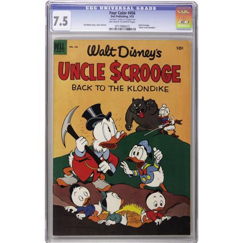<B>Four Color #456 Uncle Scrooge "Back to the Klondike" (Dell, 1953) CGC VF- 7.5 Off-white to white pages.</B></I> Carl Barks cover and art. CGC notes, "'Carl Barks' written on 1st page in pen.'" Overstreet 2006 VF 8.0 value = $468. CGC census 11/06: 1 in 7.5, 7 higher.<BR><BR><b>Shipping:</b> Slabbed Comic (<a target="_blank" href="http://www.heritageauctions.com/common/shipping.php">view shipping information</a>)