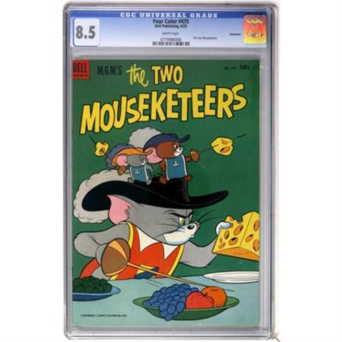 <B>Four Color #475 M.G.M.'s The Two Mousketeers - Vancouver pedigree (Dell, 1953) CGC VF+ 8.5 White pages.</B></I> M.G.M.'s The Two Mousketeers. Overstreet 2007 VF 8.0 value = $53; VF/NM 9.0 value = $82. CGC census 6/07: 1 in 8.5, none higher.<BR><BR><b>Shipping:</b> Comics - Slabbed (certified) (<a target="_blank" href="http://www.heritageauctions.com/common/shipping.php">view shipping information</a>)