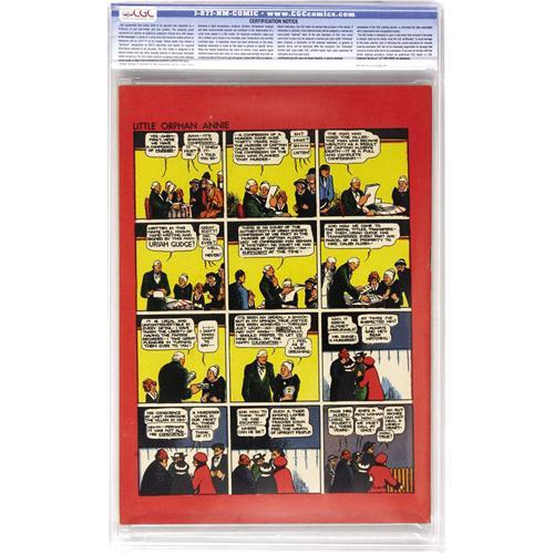<B>Four Color #52 Little Orphan Annie - Davis Crippen ("D" Copy) pedigree (Dell, 1944) CGC VF/NM 9.0 Cream to off-white pages.</B></I> This is the only copy graded above FN 6.0 by CGC as of this writing, and we hadn't seen this book in any condition in many a year. It's Annie's third <B>Four Color</B></I> appearance. Overstreet 2006 VF/NM 9.0 value = $337; NM- 9.2 value = $460. CGC census 6/06: 1 in 9.0, none higher. <I>From the Crippen Collection.</B></I> <BR><BR><B>Important notice:</B> Heritage usually auctions material at the rate of 200-250 lots per hour. On some occasions eBay Live bid software or the Internet may not be able to keep up with the pace of the auction. We recommend placing a realistic absentee bid now as insurance to avoid disappointment. Occasionally the auctioneer may eliminate or reject an eBay Live bid, and the auctioneer may also reopen a lot after the close of the eBay live bidding (usually because we missed an audience bid), and may reject your bid even if it shows you as the winning bidder. By bidding via eBay Live, you agree that Heritage may award the lot to another bidder at its sole discretion under the circumstances described above or any other reasonable circumstances. Since eBay bids are not shown to us until we open the lot on the floor, we treat those bids just like floor bids. In most cases the floor responds before the eBay bid is presented to us, due to Internet lag time, so for consistency we have made it a policy that floor bids are always considered first over tie eBay live bids. Also please note that all Heritage lots purchased through eBay Live carry a 22.5% Buyer's Premium. Please make sure you read the Terms and Conditions before you bid. This lot is being auctioned in conjunction with a live floor auction by Heritage Auction Galleries. All final auction and invoice information will be supplied by Heritage Auction Galleries, and all other information should be considered preliminary. Lot:41001 <BR><BR><B>Winning Notification and Billing:</B> After the FINAL session in this auction is complete, Heritage will send e-mail and snail mail invoices. This process normally takes several days. All final auction and invoice information will be supplied by Heritage Auction Galleries, and all other information should be considered preliminary. <BR><BR>This auction will be conducted on a live auction floor and over the Internet through eBay Live. If you choose to place an absentee bid, please take a moment to <font color='#0000ff'><u><a href='http://pages.ebay.com/liveauctions/help/before/laabsentee.html'>learn how eBay Live absentee bidding works</a></u></font><font color='#000000'>