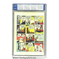 Four Color #6 Smitty (Dell, 1942) CGC VF/NM 9.0 Cream to off-white pages. Sizzling cover colors and gloss earmark this Golden Age appearance of Smitty, the only copy currently under CGC's watchful eye. Overstreet 2003 VF/NM 9.0 value = $234; NM 9.4 value = $300. Important notice: Heritage usually auctions material at the rate of 200-250 lots per hour. On some occasions eBay Live bid software or the Internet may not be able to keep up with the pace of the auction. We recommend placing a realistic absentee bid now as insurance to avoid disappointment. Occasionally the auctioneer may eliminate or reject an eBay Live bid, and the auctioneer may also reopen a lot after the close of the eBay live bidding (usually because we missed an audience bid), and may reject your bid even if it shows you as the winning bidder. By bidding via eBay Live, you agree that Heritage may award the lot to another bidder at its sole discretion under the circumstances described above or any other reasonable circumstances. Since eBay bids are not shown to us until we open the lot on the floor, we treat those bids just like floor bids. In most cases the floor responds before the eBay bid is presented to us, due to Internet lag time, so for consistency we have made it a policy that floor bids are always considered first over tie eBay live bids. Also please note that all Heritage lots purchased through eBay Live carry a 20% Buyer's Premium. Please make sure you read the Terms and Conditions before you bid.