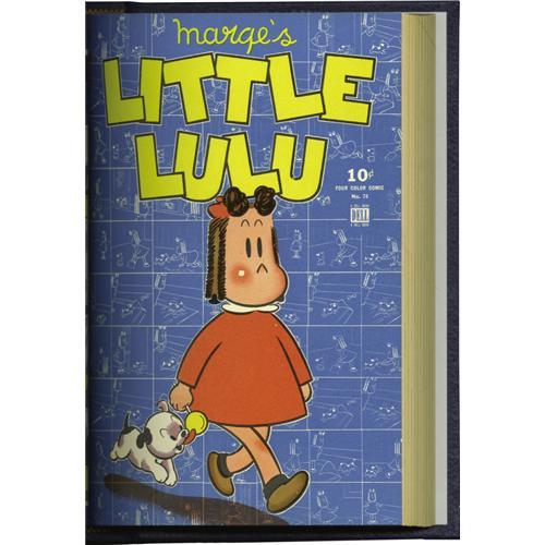 <B>Four Color #73-84 Bound Volume (Dell, 1945).</B></I> The highlights of this excellent volume include the first Little Lulu comic book story (#74) as well as the only Mickey Mouse story drawn by Carl Barks (#79)! In all, the book includes #73 (The Gumps), #74 (Marge's Little Lulu), #75 (Gene Autry), #76 (Little Orphan Annie), #77 (Felix the Cat), #78 (Porky Pig), #79 (Mickey Mouse in "The Riddle of the Red Hat", Carl Barks art), #80 (Smilin' Jack), #81 (Moon Mullins), #82 (Lone Ranger), #83 (Gene Autry), and #84 (Flash Gordon, Alex Raymond art). The condition of the covers is comparable to what you would expect from NM pedigree copies. The page quality is cream to off-white. The comics have been bound into a blue hardcover volume with the title and issue numbers embossed on the spine. All comics have been trimmed as part of the binding process. Overstreet 2006 VG 4.0 value for group = $972. <BR><BR><B>Important notice:</B> Heritage usually auctions material at the rate of 200-250 lots per hour. On some occasions eBay Live bid software or the Internet may not be able to keep up with the pace of the auction. We recommend placing a realistic absentee bid now as insurance to avoid disappointment. Occasionally the auctioneer may eliminate or reject an eBay Live bid, and the auctioneer may also reopen a lot after the close of the eBay live bidding (usually because we missed an audience bid), and may reject your bid even if it shows you as the winning bidder. By bidding via eBay Live, you agree that Heritage may award the lot to another bidder at its sole discretion under the circumstances described above or any other reasonable circumstances. Since eBay bids are not shown to us until we open the lot on the floor, we treat those bids just like floor bids. In most cases the floor responds before the eBay bid is presented to us, due to Internet lag time, so for consistency we have made it a policy that floor bids are always considered first over tie eBay live bids. Also please note that all Heritage lots purchased through eBay Live carry a 22.5% Buyer's Premium. Please make sure you read the Terms and Conditions before you bid. This lot is being auctioned in conjunction with a live floor auction by Heritage Auction Galleries. All final auction and invoice information will be supplied by Heritage Auction Galleries, and all other information should be considered preliminary. Lot:41001 <BR><BR><B>Winning Notification and Billing:</B> After the FINAL session in this auction is complete, Heritage will send e-mail and snail mail invoices. This process normally takes several days. All final auction and invoice information will be supplied by Heritage Auction Galleries, and all other information should be considered preliminary. <BR><BR>This auction will be conducted on a live auction floor and over the Internet through eBay Live. If you choose to place an absentee bid, please take a moment to <font color='#0000ff'><u><a href='http://pages.ebay.com/liveauctions/help/before/laabsentee.html'>learn how eBay Live absentee bidding works</a></u></font><font color='#000000'>