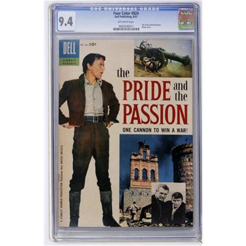<B>Four Color #824 The Pride and the Passion (Dell, 1957) CGC NM 9.4 Off-white pages.</B></I> Frank Sinatra and Cary Grant photo cover. Overstreet 2007 NM- 9.2 value = $150. CGC census 9/07: 1 in 9.4, none higher.<BR><BR><b>Shipping:</b> Comics - Slabbed (certified) (<a target="_blank" href="http://www.heritageauctions.com/common/shipping.php">view shipping information</a>)