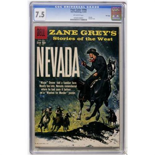 <B>Four Color #996 Nevada - File Copy (Dell, 1959) CGC VF- 7.5 Off-white pages.</B></I> Zane Grey's Nevada. Painted cover. Overstreet 2007 VF 8.0 value = $31. CGC census 9/07: 1 in 7.5, 2 higher.<BR><BR><b>Shipping:</b> Comics - Slabbed (certified) (<a target="_blank" href="http://www.heritageauctions.com/common/shipping.php">view shipping information</a>)