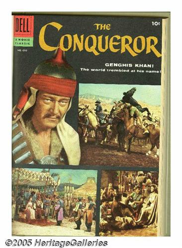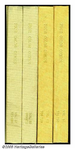 <B>Four Color Bound Volumes (Dell, 1956).</B></I> These volumes contain trimmed and bound file copies of issues #673-696 and 709-732. As usual, it's a different feature in every issue -- some of the notable ones include <B>The Searchers</B></I>, <B>Gunsmoke</B></I>, <B>Song of the South</B></I>, <B>The Little Rascals</B></I>, <B>Spin and Marty</B></I>, <B>Prince Valiant</B></I>, <B>Dotty Dripple</B></I>, and <B>Zorro</B></I>. What's quite remarkable is the condition of the comics -- if you're used to "bracing your nose" to open up a 50-year-old Dell, you'll be quite pleased at the nice condition, and especially the excellent page quality of these issues. Approximate Overstreet VG 4.0 value for group = $800. <I>From the Random House Archives.</B></I>