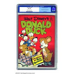Four Color Comics #178 (Dell, 1947) CGC VF+ 8.5 Cream to off-white pages. Uncle Scrooge makes his debut in this milestone issue in the Carl Barks' drawn "Christmas on Bear Mountain." Despite the premiere appearance of an enormously popular character, and given that Carl Barks is the artist, this book seems undervalued. Plus, when you consider that only one other copy has been graded higher by CGC, this book really deserves your attention. Overstreet 2002 VF 8.0 value = $679. Important notice: We expect to be auctioning lots at the rate of 200-250 per hour. Sometimes eBay Premier live bid software cannot keep up with that pace, so we strongly recommend that you place a realistic proxy bid now as insurance to avoid disappointment. Also please note that all Heritage/CAA lots purchased through eBay Premier carry a 20% Buyer's Premium. Please make sure you read the Terms and Conditions.