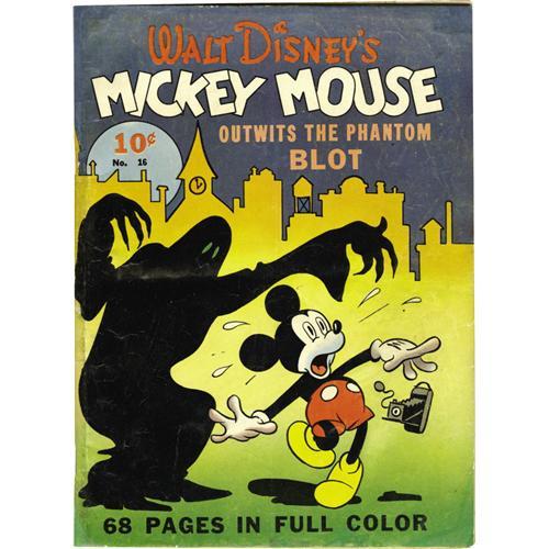 <B>Four Color (Series One) #16 Mickey Mouse (Dell, 1941) Condition: Apparent GD.</B></I> This is the first Mickey Mouse comic book, so how can you pass it up? Especially since it's got Floyd Gottfredson's "Phantom Blot" storyline, which premiered in the funny papers. It's a book no self-respecting Mickey fan should be without! This copy has extensive amateur restoration, including tape on the cover and interior pages as well as color touch. Note that CGC could not encapsulate this copy because of an overhang. Overstreet 2006 GD 2.0 value = $1,420.<BR><BR><b>Shipping:</b> Un-Slabbed Comic (<a target="_blank" href="http://www.heritageauctions.com/common/shipping.php">view shipping information</a>)