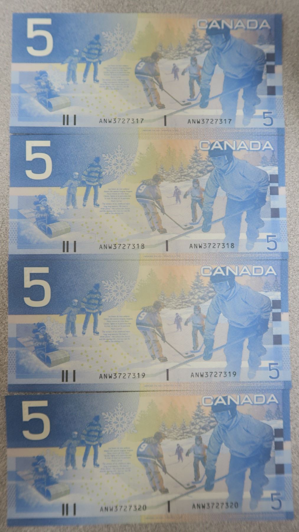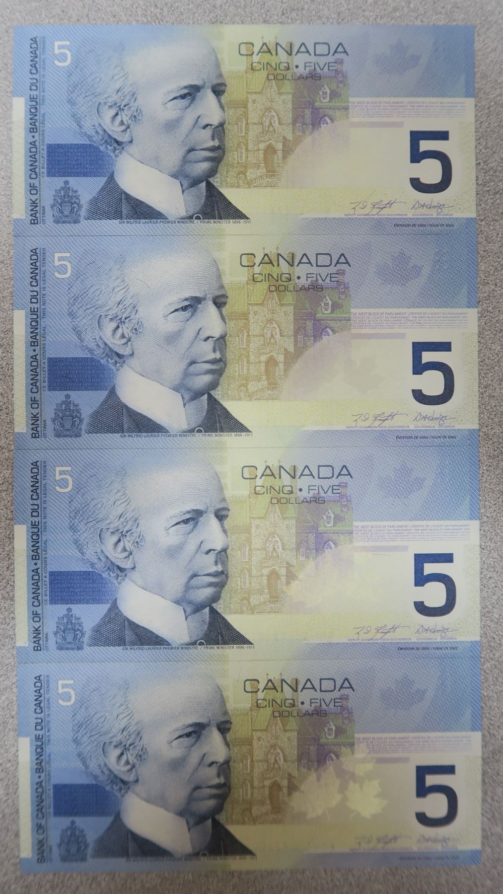 Four Consecutive 2002 Canadian 5 Dollar Bills