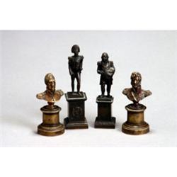 Depicting two, standing on square plinths; and a pair of busts, raised on socles and round bases.