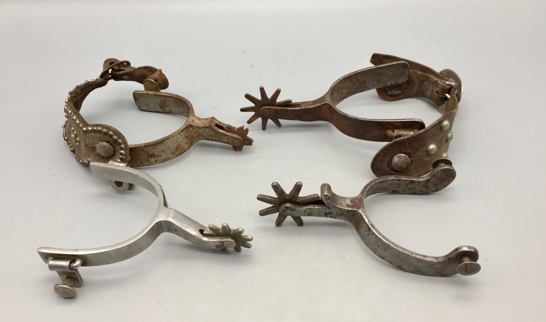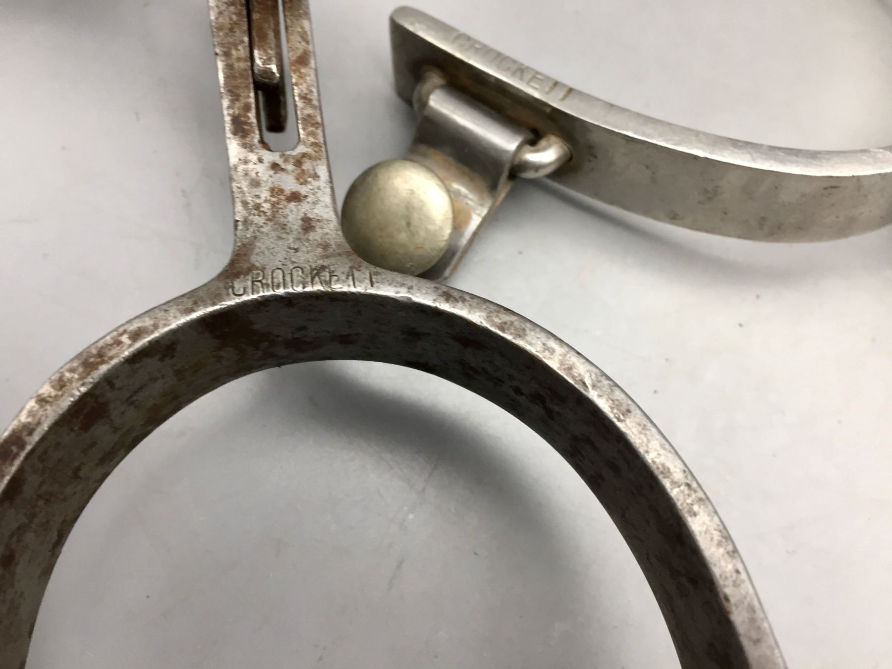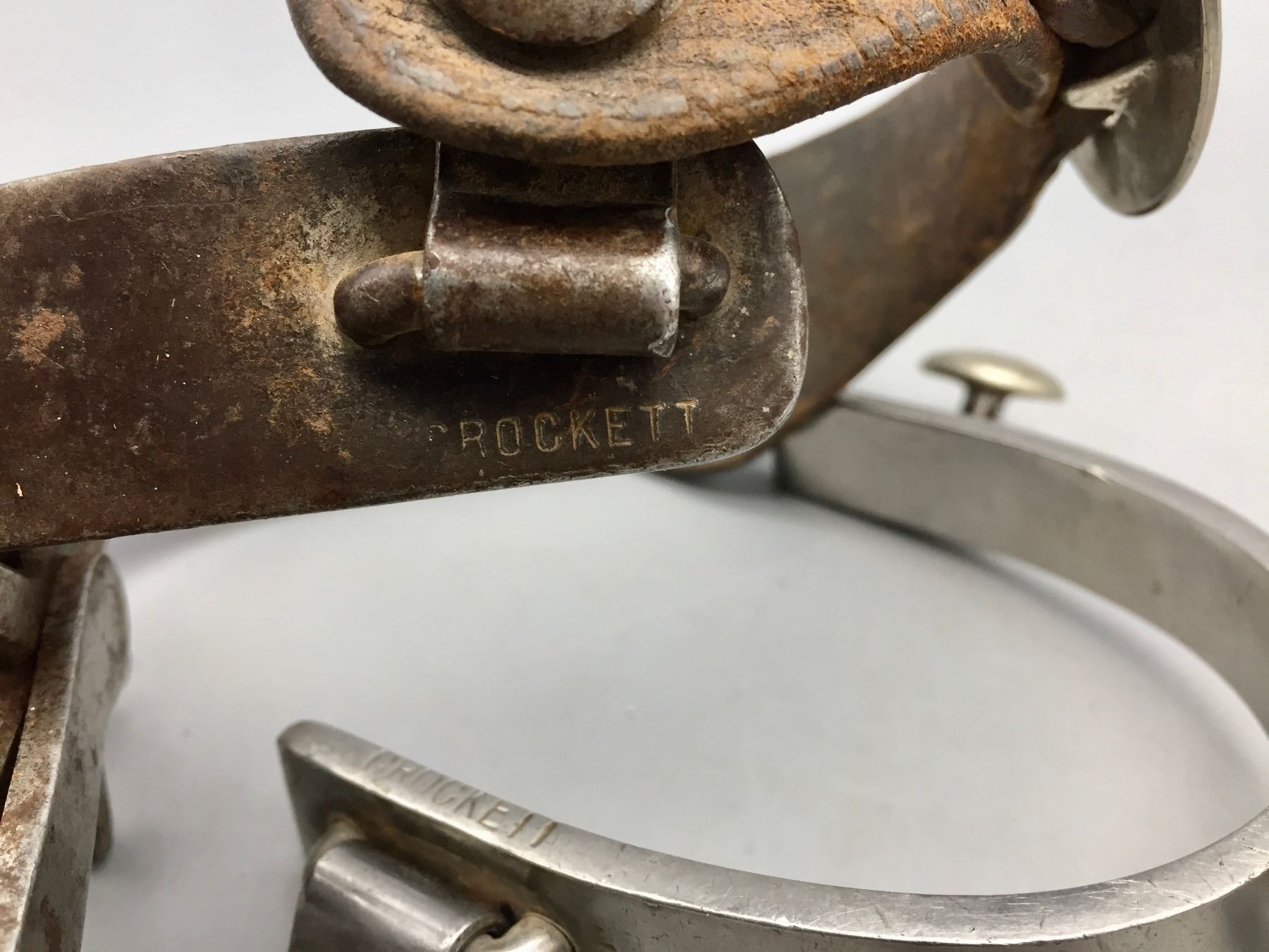 Description: Included for sale in this lot are four, single Crockett spurs in varying styles and designs. Maker: Various.