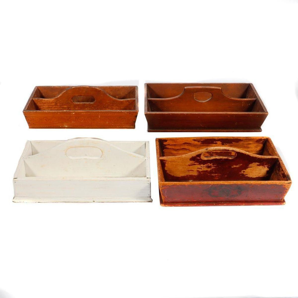 Four Cutlery Trays. Measures 12 1/4in x 7 1/2in, 12in x 7 1/4in, 12in x 9in, 12 1/4in x 8 1/2in. Condition Report: All lots are sold as is and where is. Turner Auctions + Appraisals, LLC provides condition reports upon request to aid in your bidding decision. No statement regarding age, condition, kind, value, or quality of a lot, whether made orally at the auction or at any other time, or in writing in this catalog or elsewhere, shall be construed to be an express or implied warranty, representation, or assumption of liability. All sales are final, Turner Auctions + Appraisals, LLC does not give refunds based on condition. Turner Auctions + Appraisals, LLC does not perform any shipping or packing services. We do have a list of suggested shippers who gladly provide quotes prior to your bidding. Please visit our webpage for a list of recommended shippers.