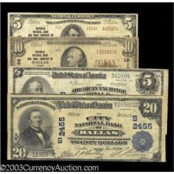 <TABLE cellSpacing=0 cellPadding=0 width="100%" bgColor=#000000 border=0><TBODY> <TR><TD width="100%"><TABLE cellSpacing=1 cellPadding=3 width="100%" border=0><TBODY><TR><TD width="100%" bgColor=#79735c><FONT face=arial color=#ffffff size=3><B>Description</B> </FONT></TD></TR><TR><TD width="100%" bgColor=#ffffff><FONT face=arial size=2><B>Four Dallas Nationals</B></I><BR><B>Dallas, TX -</B></I> $5 1902 Plain Back Fr. 600 <B>American Exchange NB</B></I> Ch. # 3623 <B>Fine</B></I><BR><B>Dallas, TX -</B></I> $20 1902 Plain Back Fr. 659 <B>City NB</B></I> Ch. # (S)2455 <B>VF,</B></I> but damaged<BR><B>Dallas, TX -</B></I> $5 1929 Ty. 2 <B>Republic NB & TC</B></I> Ch. # 12186 <B>Fine</B></I><BR><B>Dallas, TX -</B></I> $10 1929 Ty. 1 <B>Republic NB & TC</B></I> Ch. # 12186 <B>Good</B></I><BR>(200-400 ) (4 notes) </FONT></TD></TR></TBODY></TABLE></TD></TR></TBODY></TABLE><BR><TABLE cellSpacing=0 cellPadding=0 width="100%" bgColor=#000000 border=0><TBODY><TR> 4 notes Important notice: Heritage usually auctions material at the rate of 200-250 lots per hour. On some occasions eBay Live bid software or the Internet may not be able to keep up with the pace of the auction. We recommend placing a realistic absentee bid now as insurance to avoid disappointment. Occasionally the auctioneer may eliminate or reject an eBay Live bid, and the auctioneer may also reopen a lot after the close of the eBay live bidding (usually because we missed an audience bid), and may reject your bid even if it shows you as the winning bidder. By bidding via eBay Live, you agree that Heritage may award the lot to another bidder at its sole discretion under the circumstances described above or any other reasonable circumstances. Also please note that all Heritage lots purchased through eBay Live carry a 20% Buyer's Premium. Please make sure you read the Terms and Conditions before you bid.</TR></TBODY></TABLE>