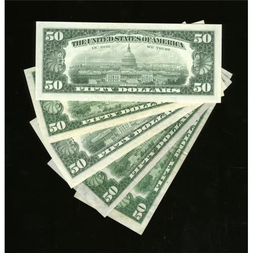 <B>Four Decades of Chicago Fifties</B></I><BR> The 1928 and 1934 notes grade <B>Very Fine </B></I>while the 1950D and two 1963A notes grade <B>AU</B></I>. A pleasing set for the beginning collector to kindle their passion<BR><BR><b>Shipping:</b> Coins & Currency (<a target="_blank" href="http://www.heritageauctions.com/common/shipping.php">view shipping information</a>)