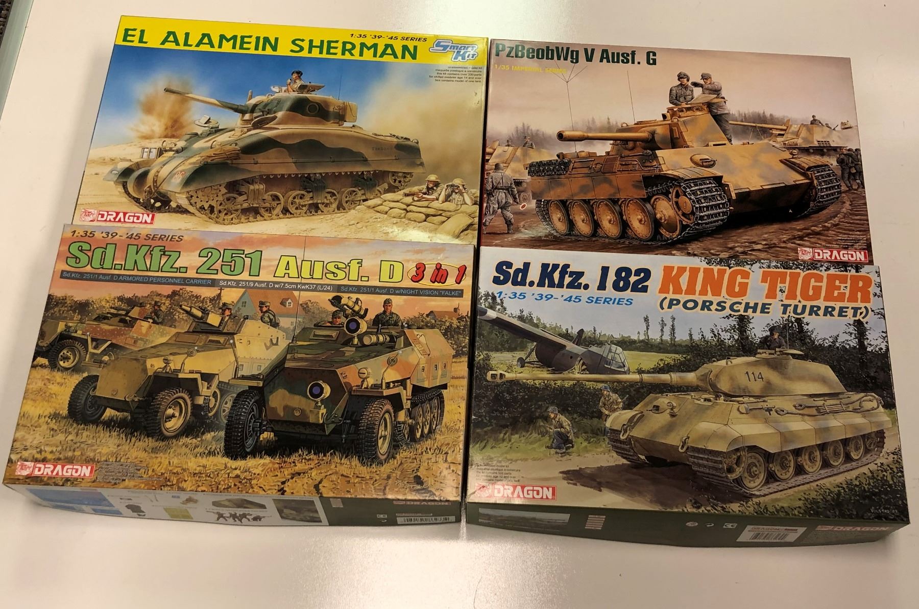 Four Dragon 1/35th Scale Started Military Model Tank Armour Kits - 3 German Armour & 1 British German Tank