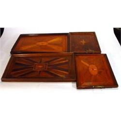 Four Edwardian inlaid mahogany rectangular trays, largest 60cm in length
