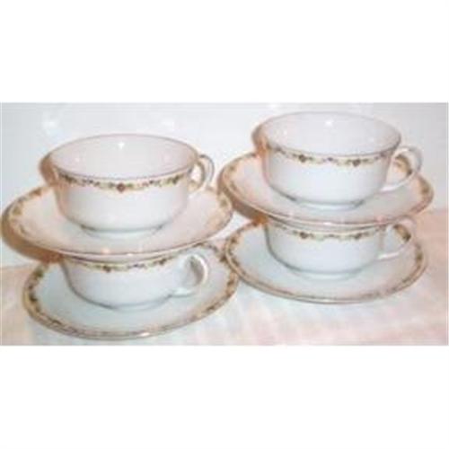 We are offering you four (4) fantastic Electra Decorated Porcelain Austrian Cups and Saucers all for one money. Each cup and saucer is in SUPERIOR condition with no chips, cracks, or dings or hairlines and each cup measures 3.625" in dimaeter and stands 1.75" tall and each saucer measures 5.50" in diameter. They are marked on the bottom with the familiar green austrian Logo.