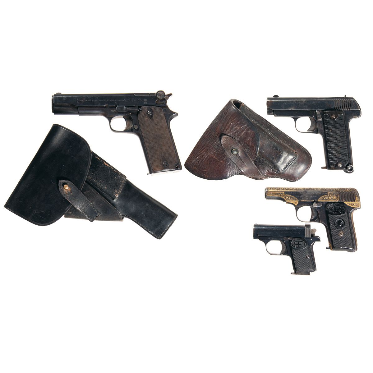 Remarked for 38 caliber, with black leather holster and two original magazines total.