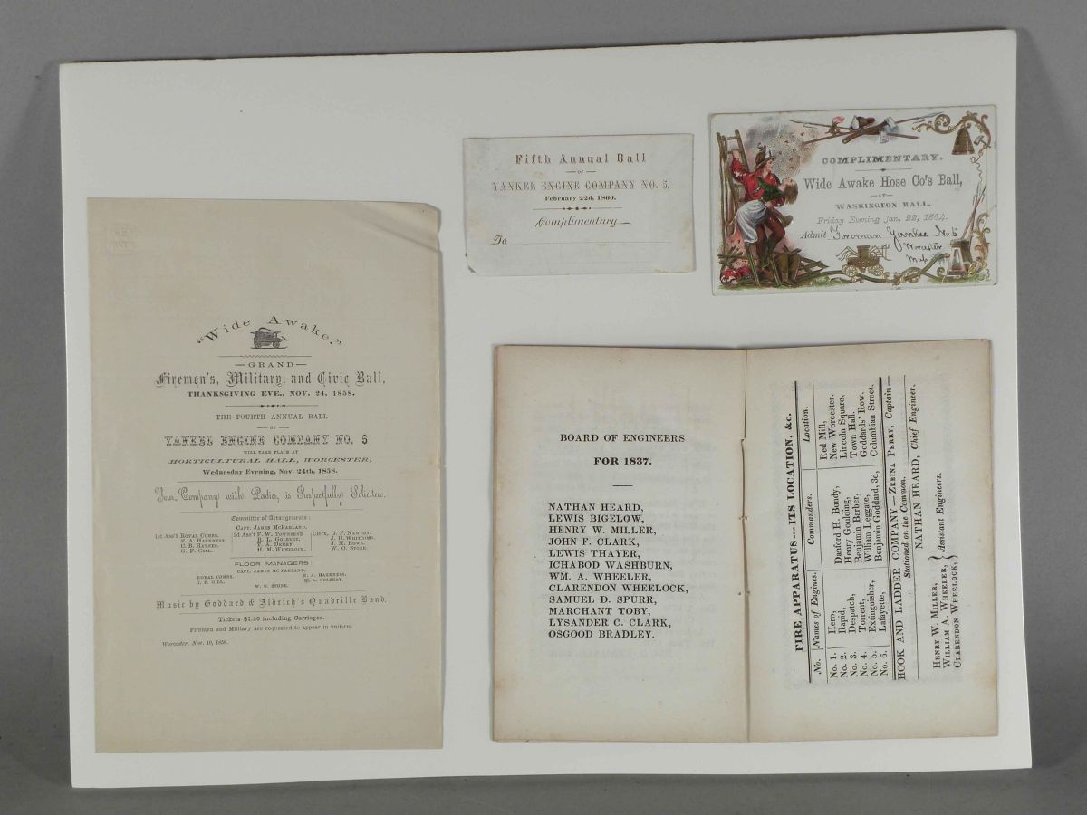 Lot of Four Firemen's Ball Invitations and Programs from the Yankee Engine Co. No 2, Worcester, Mass dated 1837-1864. All in good original condition.
