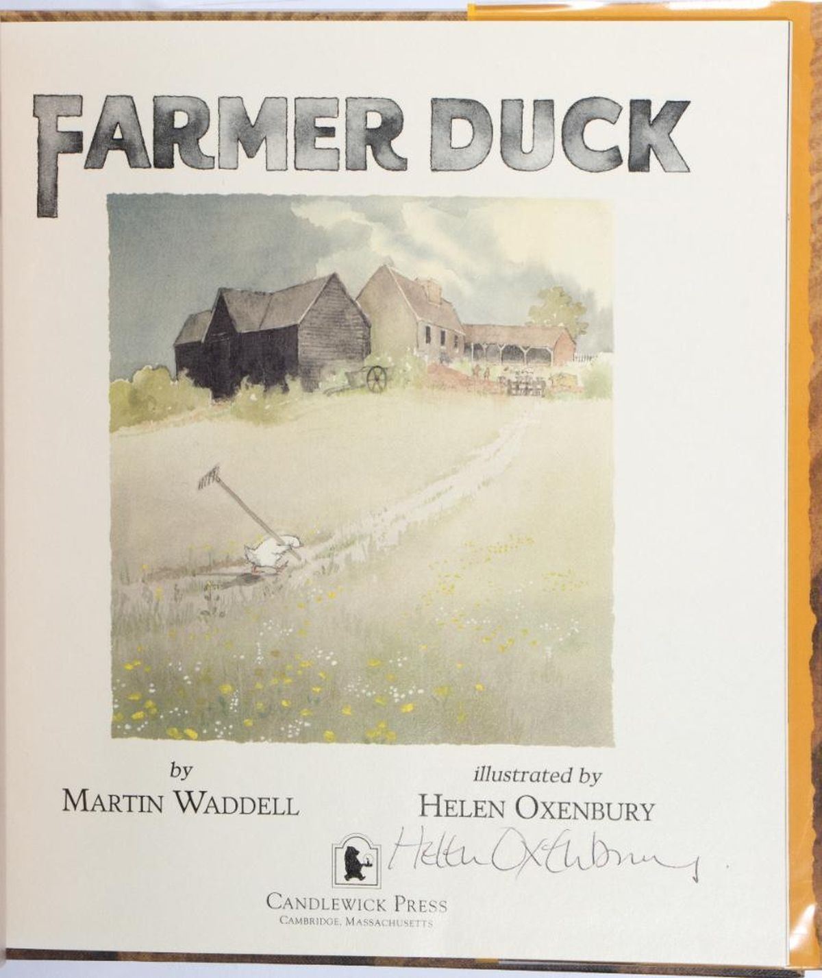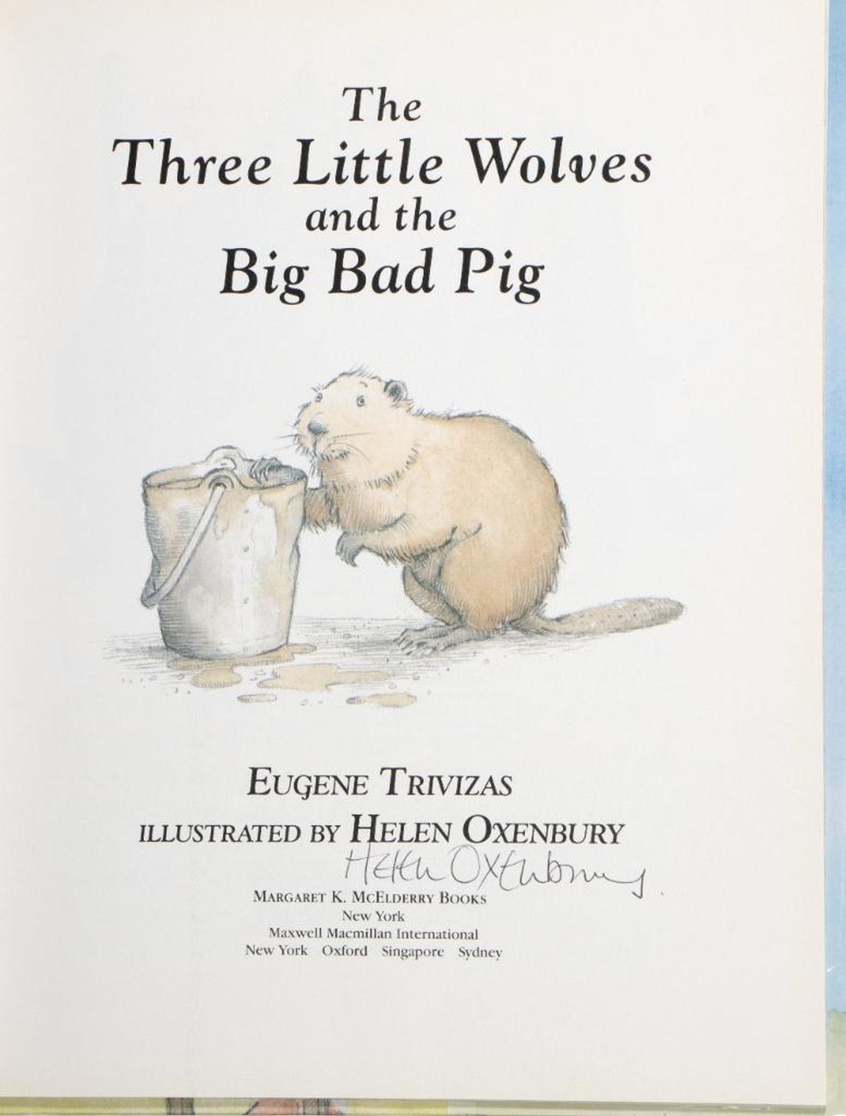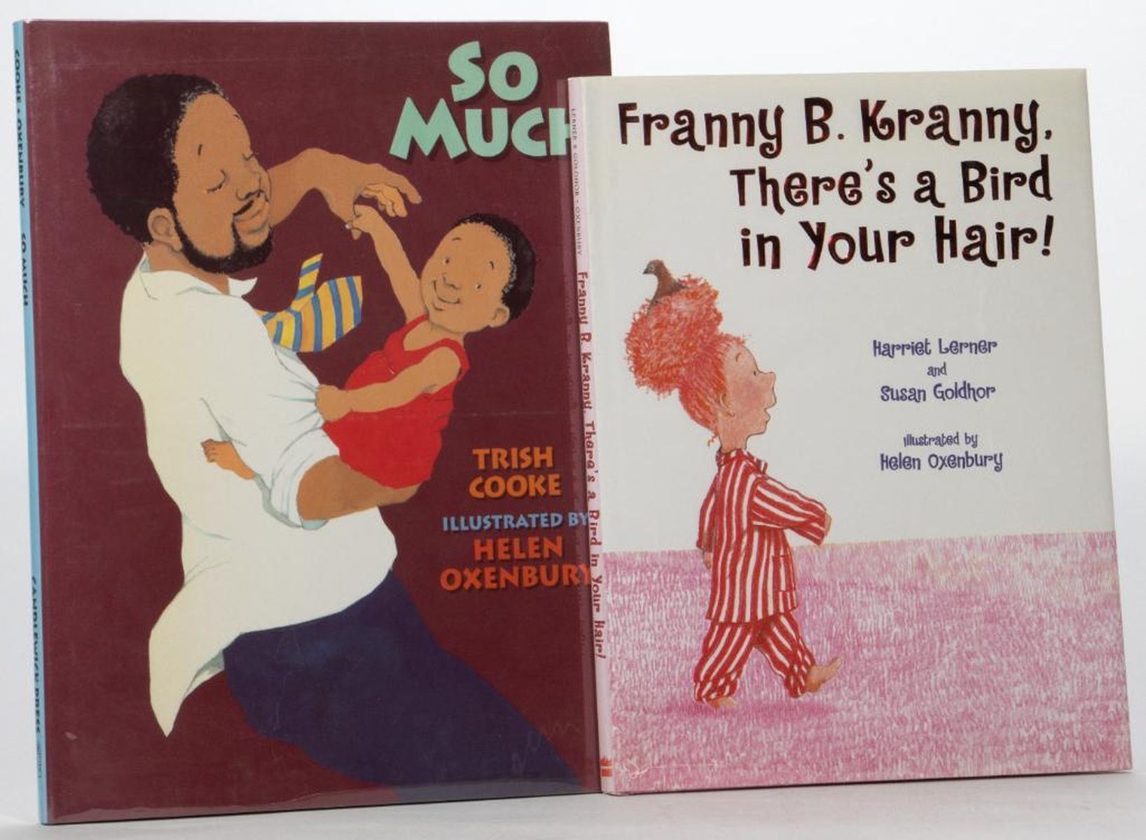 Four First Editions and Four Alice in Wonderland prints signed by Helen Oxenbury. The Three Little Wolves and the Big Bad Pig by Eugene Trivizas, illustrated by Helen Oxenbury. McElderry 1993 first edition. Illustrated hardcover in matching jacket. Signed by Oxenbury on the title page. Franny B. Kranny, Theres a Bird in Your Hair! by Harriet Lerner and Susan Goldhor, illustrated by Helen Oxenbury. Harpercollins 2001 first edition. Illustrated hardcover in matching jacket. Signed by Oxenbury on the title page. Farmer Duck by Martin Waddell, illustrated by Helen Oxenbury. Candlewick 1992 first edition. Illustrated hardcover in matching jacket. Signed by Oxenbury on the title page. So Much by Trish Cooke, illustrated by Helen Oxenbury. Candlewick 1994 first edition. Illustrated hardcover in matching jacket. Signed by Oxenbury on the title page. Together with 4 signed Alice in Wonderland prints on cardstock. All fine.