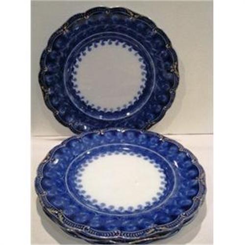 We are offering you four (4) fantastic Flow Blue Dinner Plates that are all decorated in the Cavendish Pattern all for one money. Each dinner plate measures 10" in diameter and is in SUPERIOR condition with no chips, cracks, dings or hairlines. They are marked on the bottom with the familiar Ridgeways Logo as well as the Pattern name. All four have gold wear which is indicative of an item of this age.