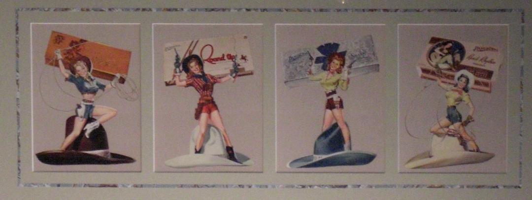 Four Framed Pangborn Pin-Up Postcards. Beautifully matted and framed, dimensions overall - 24 1/2" X 11 1/2".