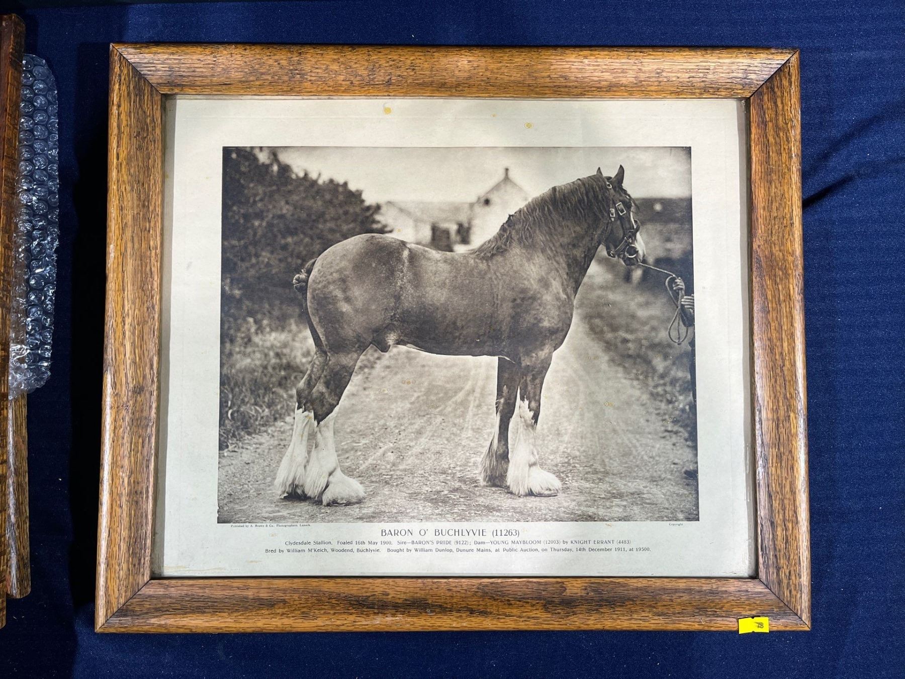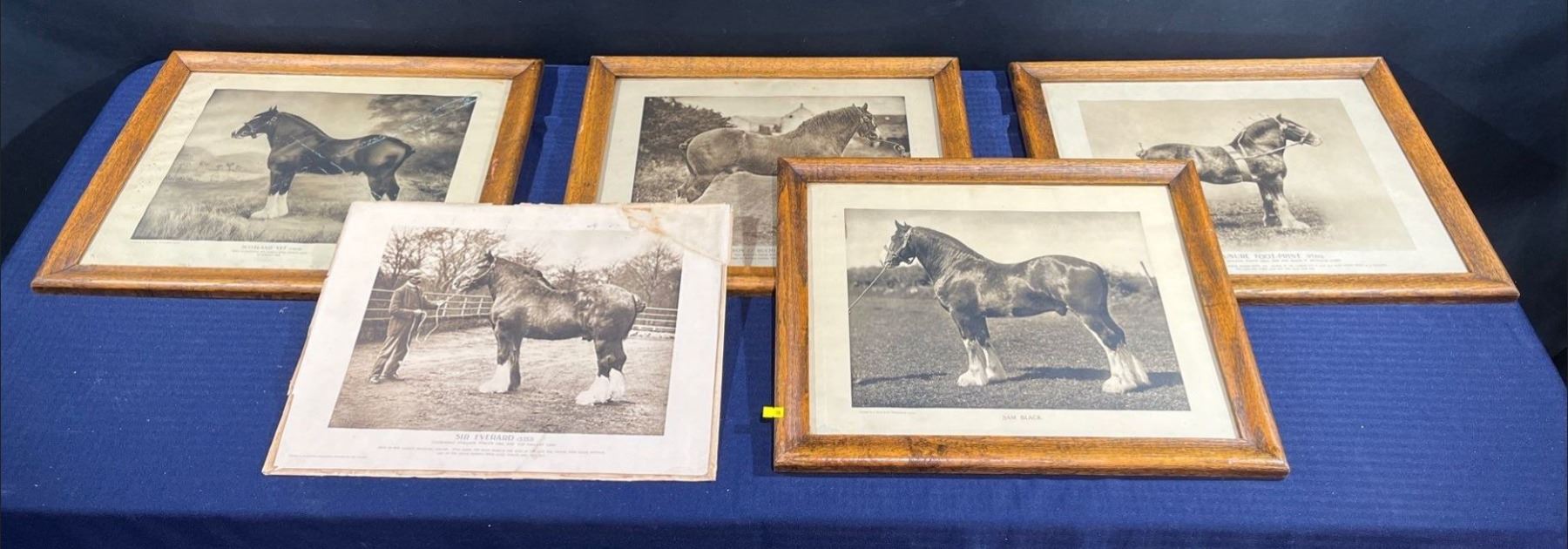 Four Framed Photographs of Work Horses plus One Unframed 14Wx8H