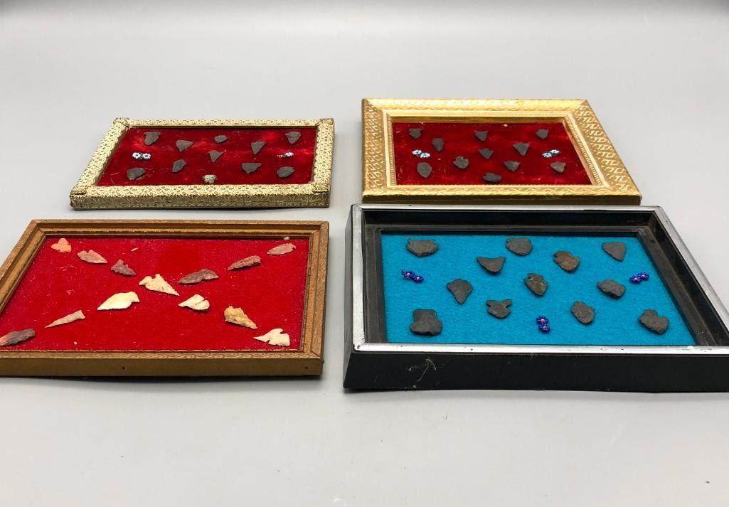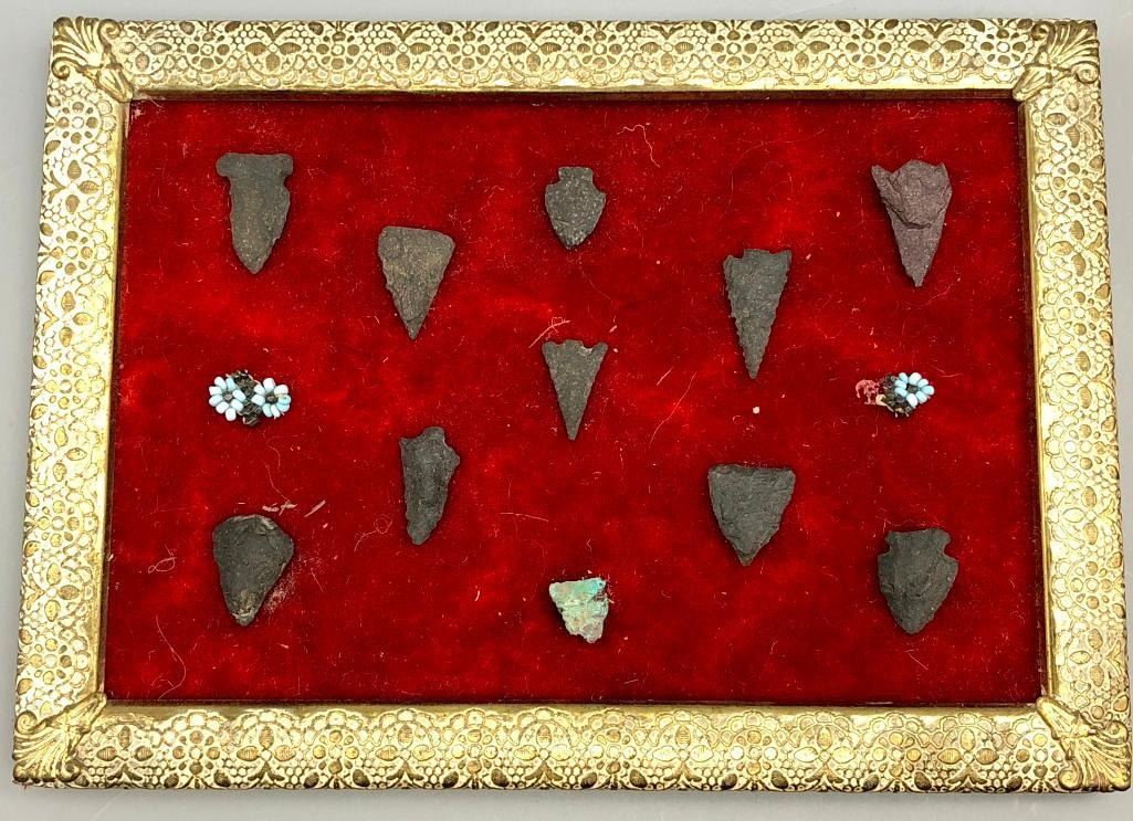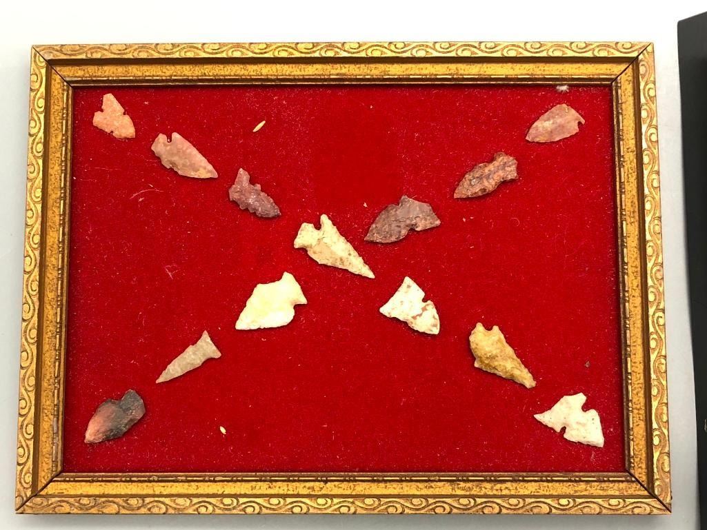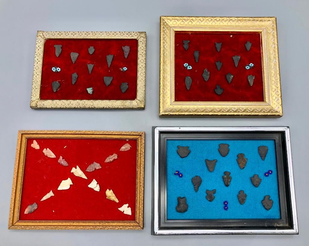 For sale in this lot are four framed displays of arrowheads. They are a variety of arrowheads from the prehistoric/historic eras. MAKER: Unknown. APPROX AGE: Old. SIZE: Various. CONDITION: As found. Please look closely at the pictures as they are an important part of our description and are hereby incorporated into the description, specifically with regards to condition. SHIPPING: There will be a $10 handling / packaging fee for shipping this lot. The actual cost of postage will be added on top of that. BUY IT NOW: If you would like to buy this item now, without waiting for the auction day to bid on it, we do offer this option (which is available up to 48 hours before the actual auction starts). The “Buy it Now” price is the high estimate of this lot (plus applicable fees and the Buyer's premium is discounted to 10% when using the Buy it Now option). If you would like to exercise this option, you must contact us by email (or phone as long as you talk to someone live). Reference this lot number and your intention to "Buy it Now."