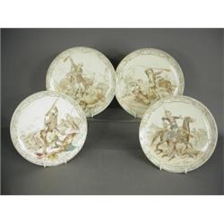 Four French pottery commemorative plates entitled 'Nos Sovs-Offs' 1790-1890 with printed edges and scenes (no. 1, 4, 8, 10), each 21cm Est. 120/150
