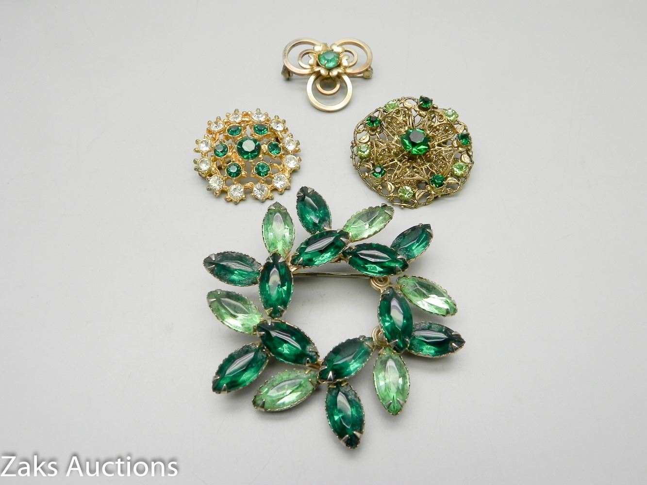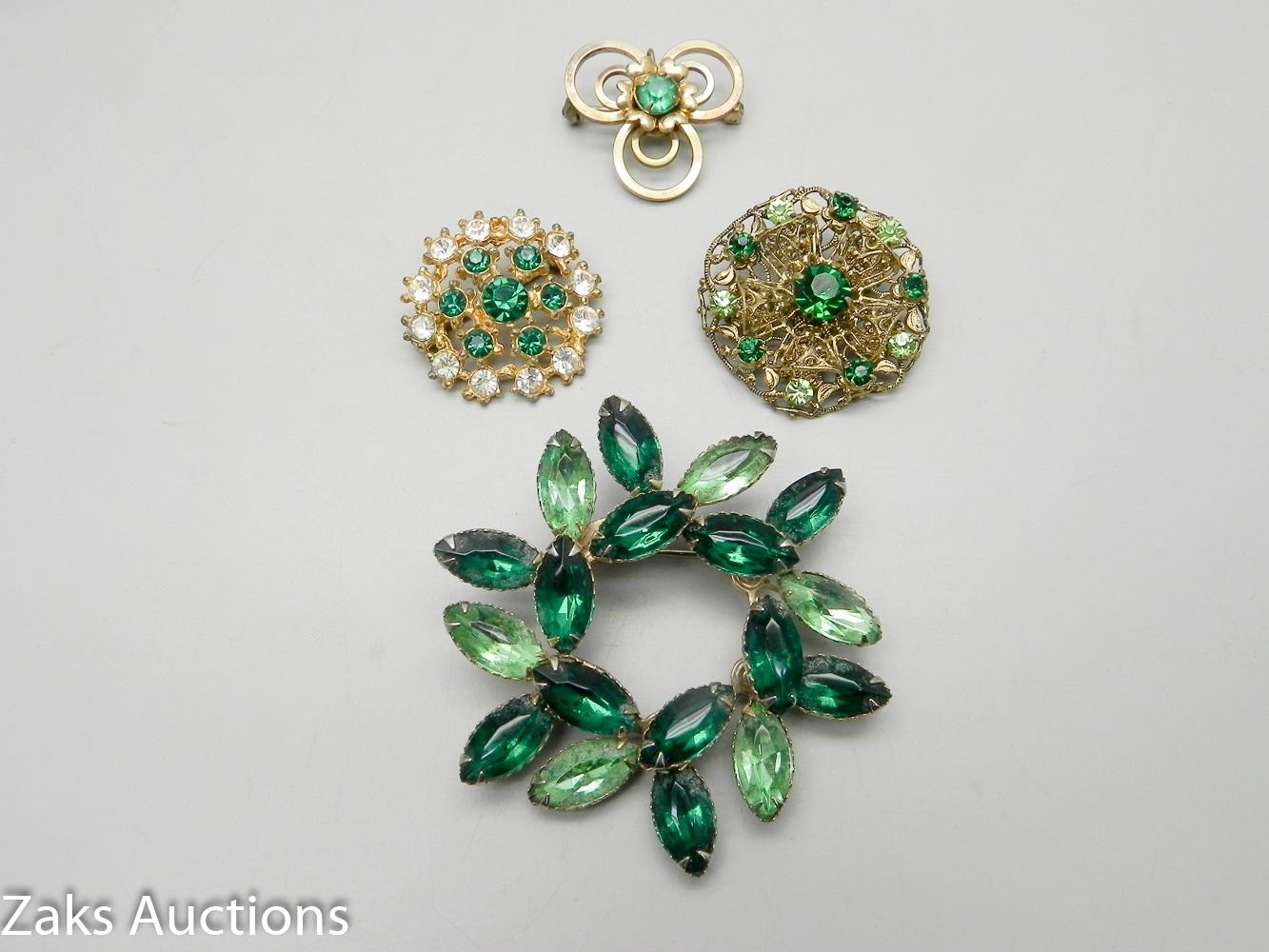 Four Green Crystal Brooches