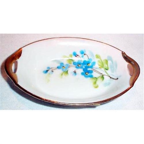 We are offering you four (4) lovely Hand Painted Austrian Open Salts all for one money. Each salt is hand painted with blooming lovely blue forget-me-nots and then gilt around the edge and handle with gold. Each salt is in SUPERIOR condition with no chips, cracks, dings or hairlines and each one measures 2.50" wide and is 4" long and all of them are marked on the bottom with the familiar Austrian Logo. I realize my photo only shows one salt but you will be purchasing four (4).