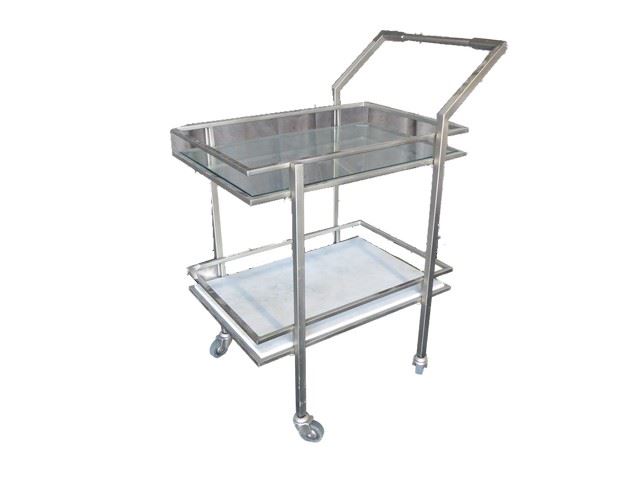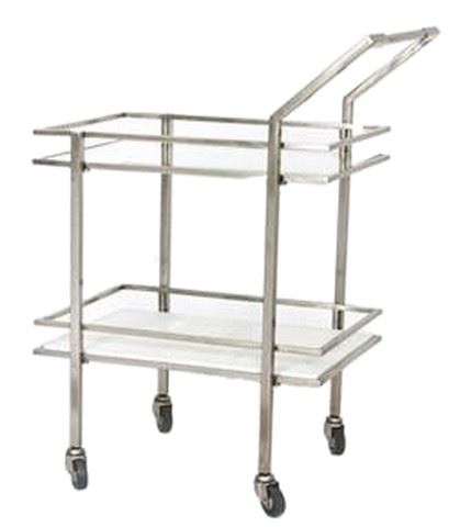BC04 - 'Four Hands - Bellot' - Brushed Nickel Bar Cart w/glass top shelf and bottom marble shelf Dims: 25W" x 17"D x 38"H Condition: lightly used - wheels don't easily roll *sold as set of 2