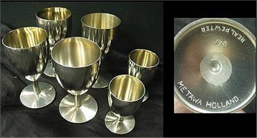 Four Holland Pewter Cups standing 4 1/2" tall and two shots 3" tall. No monograms