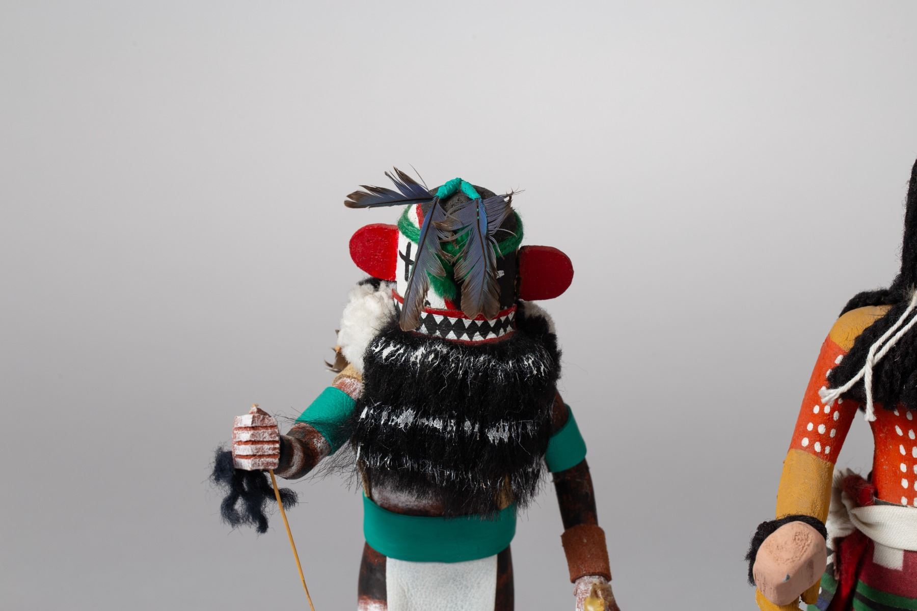C) The white face, large fur ruff, and painted symbols may represent a Wolf (Kweo) or White Buffalo kachina, which are animal spirits. Animal kachinas often act as advisors or assistants to hunters and appear in various dances.