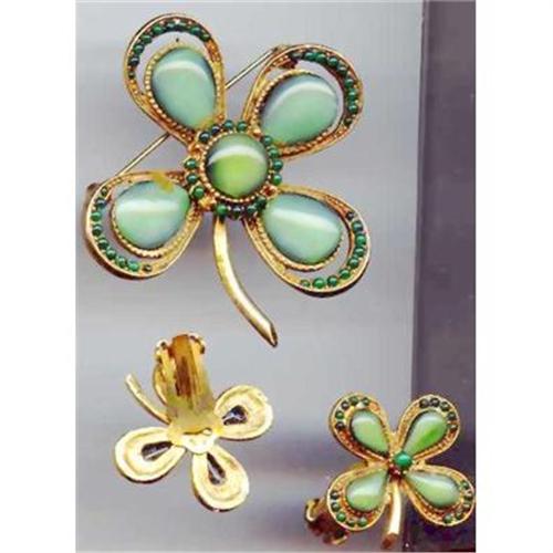 <tr><td>Title: Four Leaf Clover Pin and Earrings</td></tr>