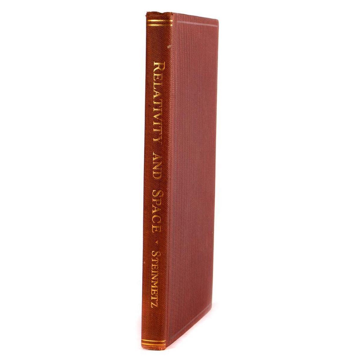 Title: Four Lectures on Relativity and Space (1923) Author: Charles Proteus Steinmetz, A.M., Ph.D. Published: McGraw-Hill Book Company, Inc. New York, 1923 Description: Hardcover. Bound in red cloth with gilt lettering. Condition: Very good condition. Slight edge wear to head and tail of spine.