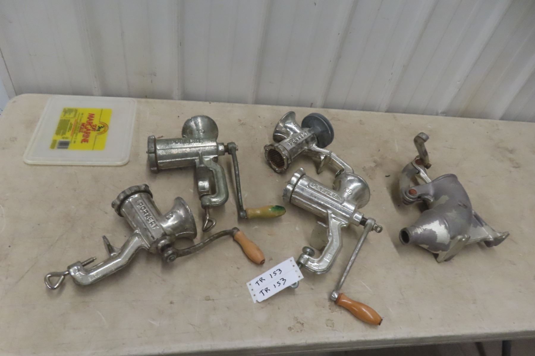 Four Meat Grinders and Sausage Press