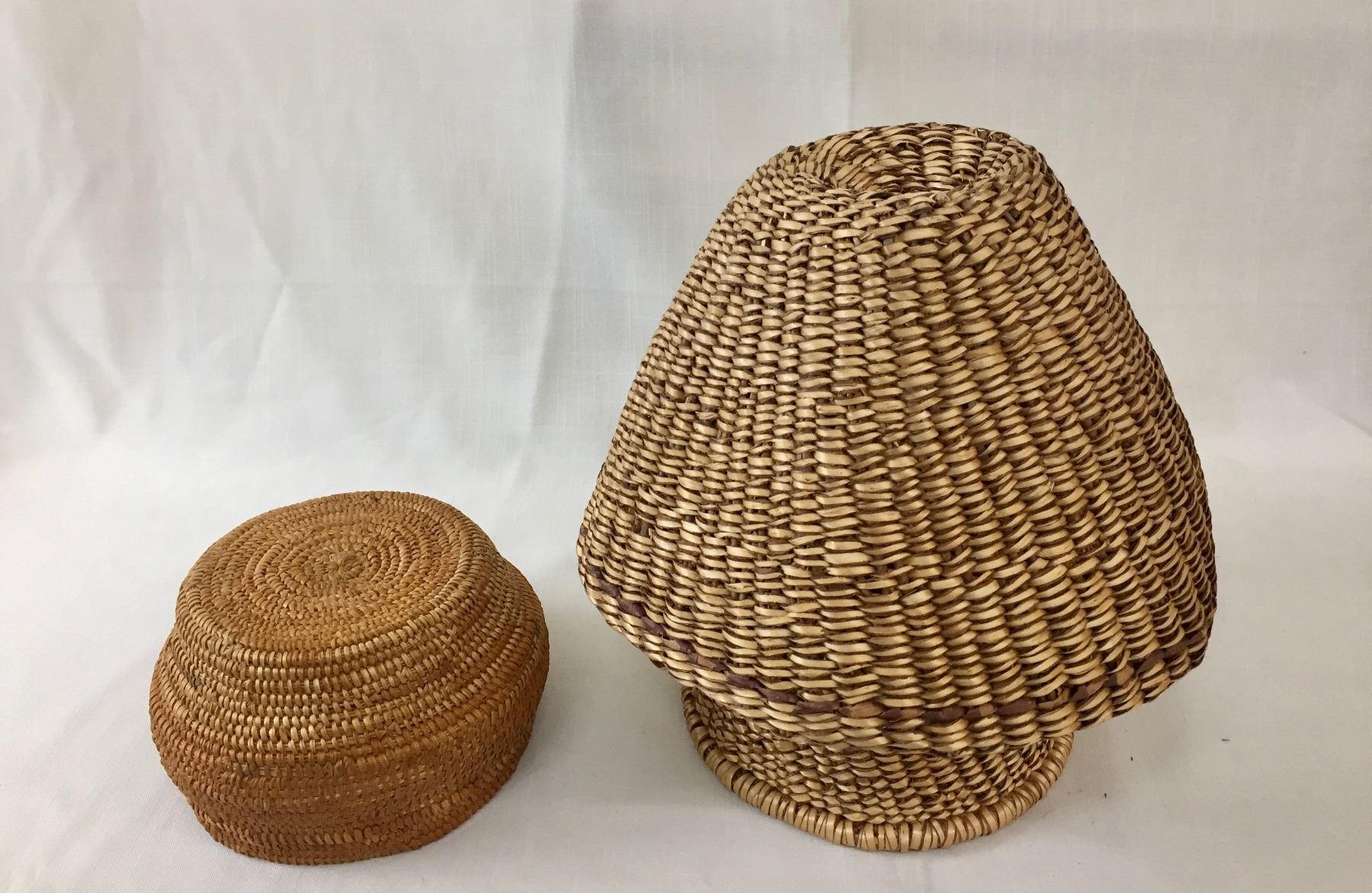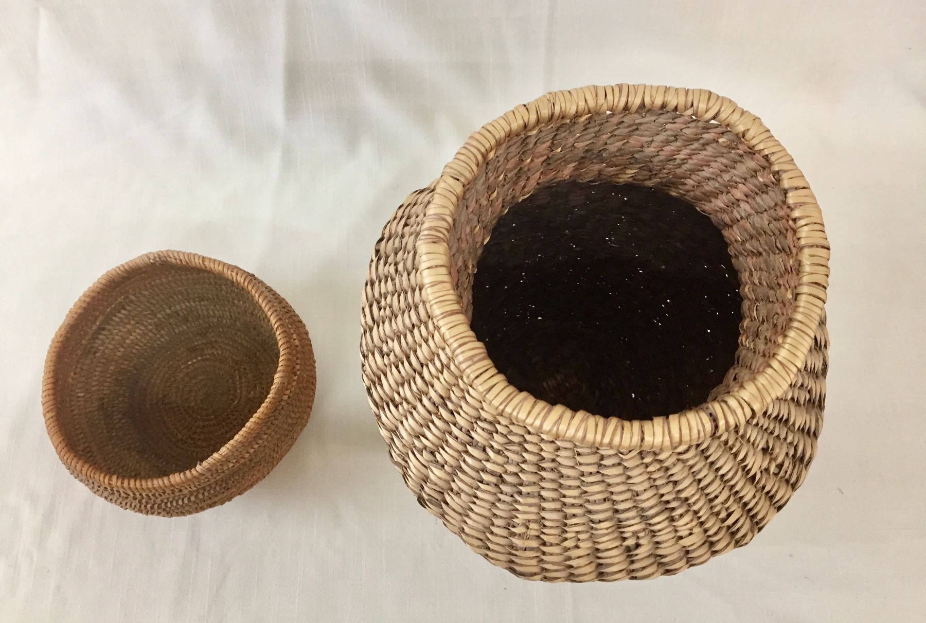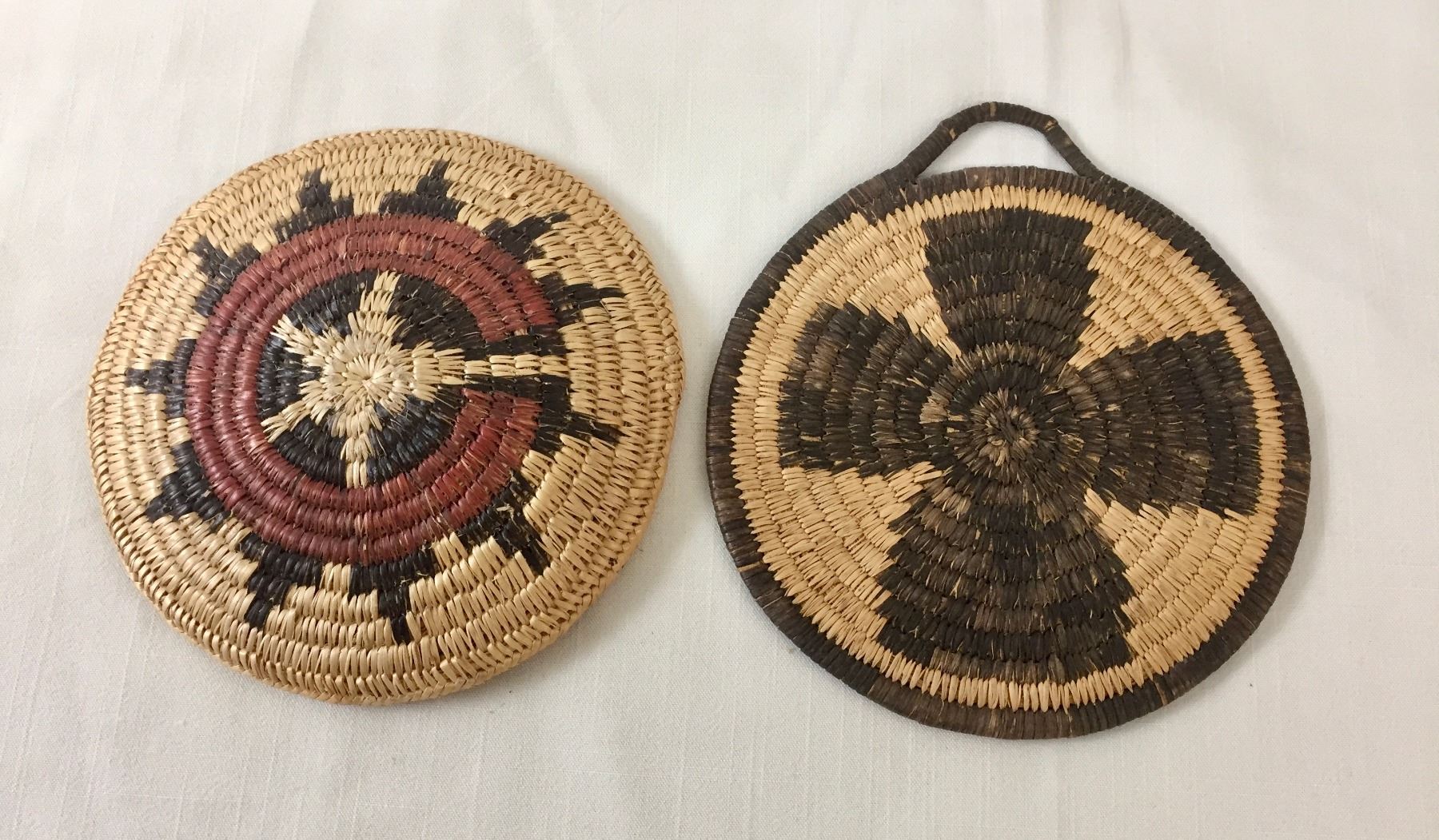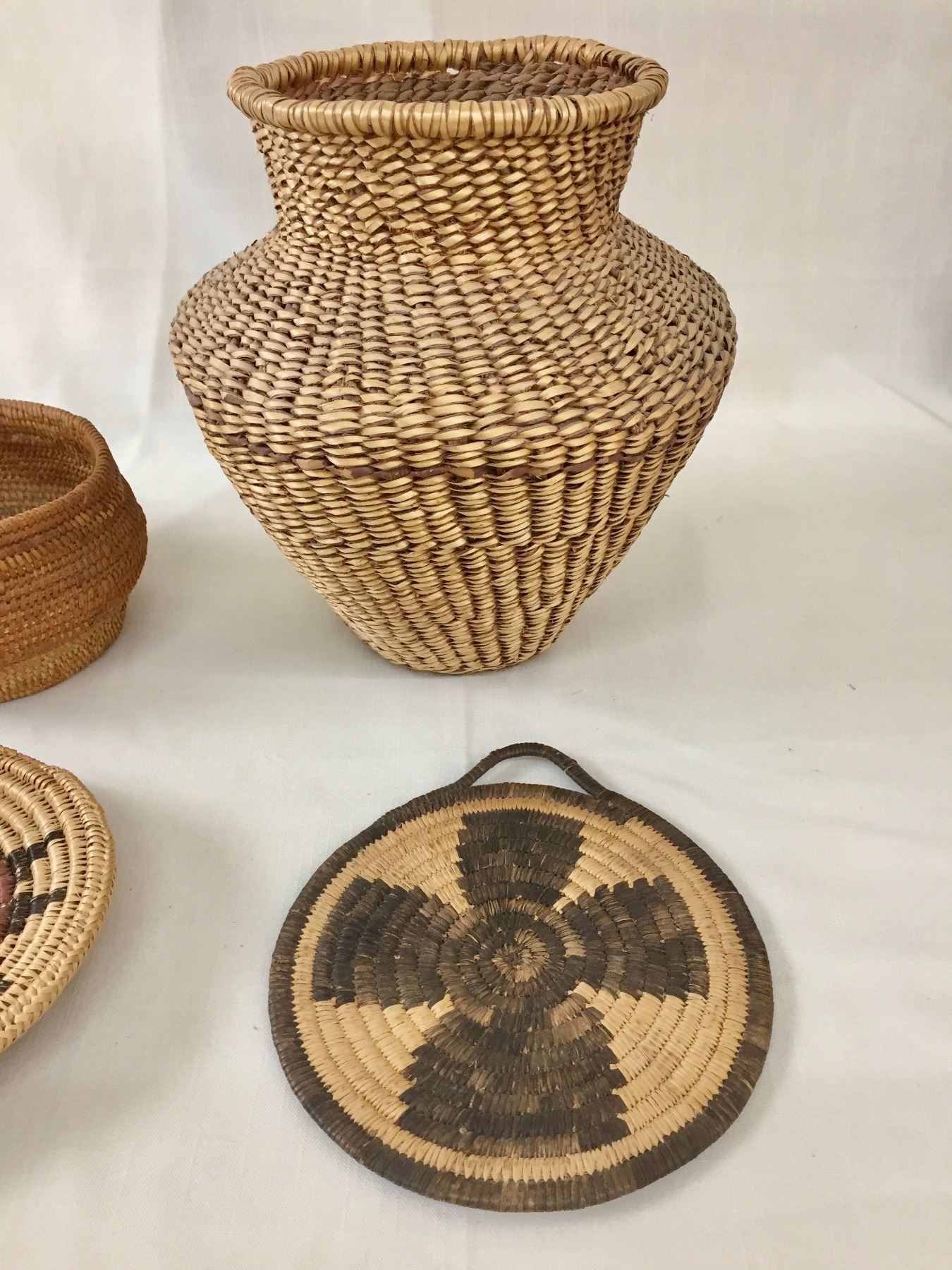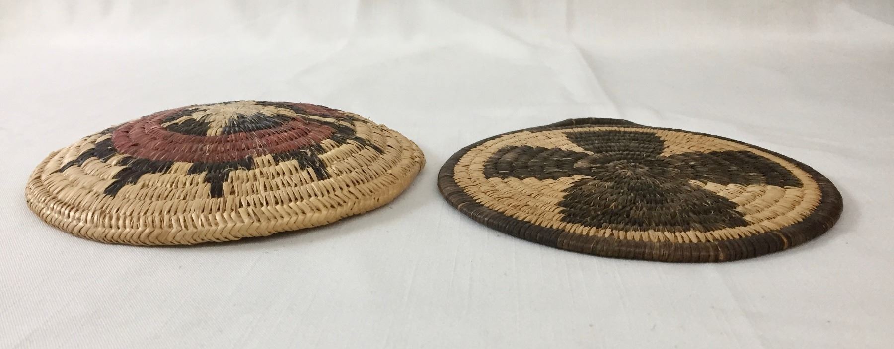 Description: Presented for sale in this lot are four miscellaneous baskets in different sizes and styles, that would make a nice addition to your collection. Maker: Unknown. Approx. Age: Vintage. Size: From 9”w x 9-1/4” tall to 6-5/8” round x 1-1/8” deep. Condition: Pretty good for their ages, normal wear expected. Please look closely at the pictures - they are an important part of our description. Shipping: There will be a $10 handling / packaging fee for shipping this lot. The actual cost of postage will be added on top of that.
